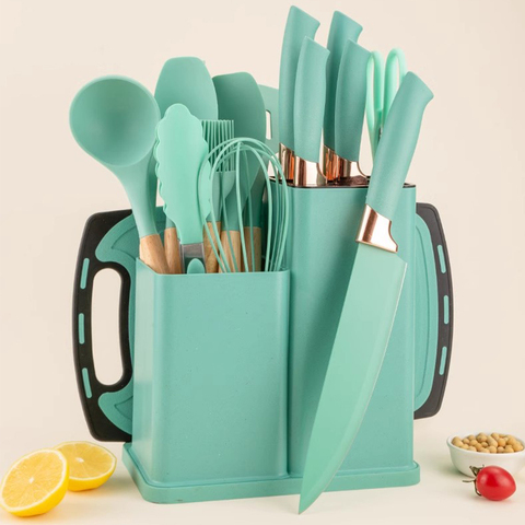 19 יח 'סיליקון מטבח sercl סט סט עם סכין סט חיתוך עם לוח חיתוך