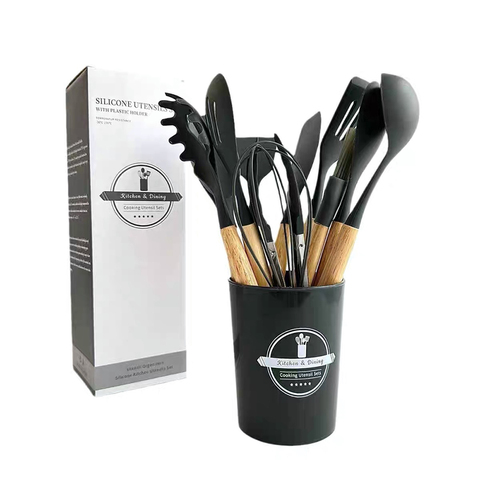 סט מטבח סיליקון באיכות גבוהה 12 חלקים עם ידית עץ עמיד בטוח לשימוש ביתי